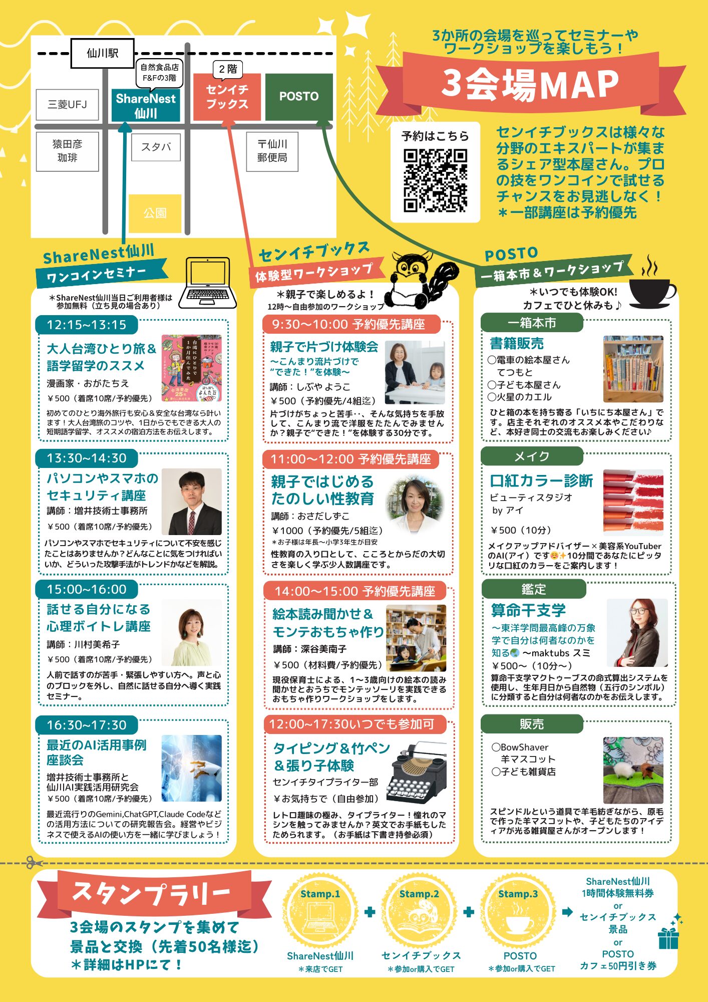 お片付けや性教育の講座、子どもが店主を務める本屋さんなど、家族で一日中楽しめるイベントが盛りだくさんです。